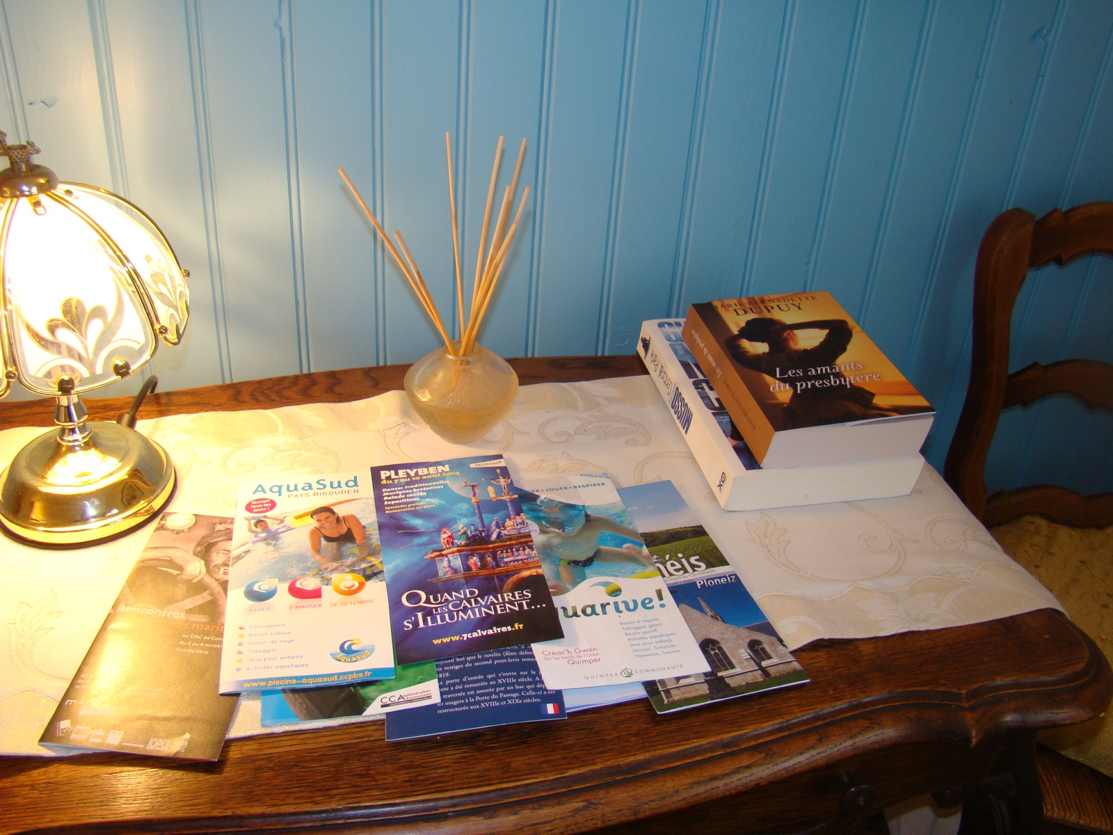 Un plateau de courtoisie avec thé, café et tisane est à votre disposition ainsi que quelques livres et revues.